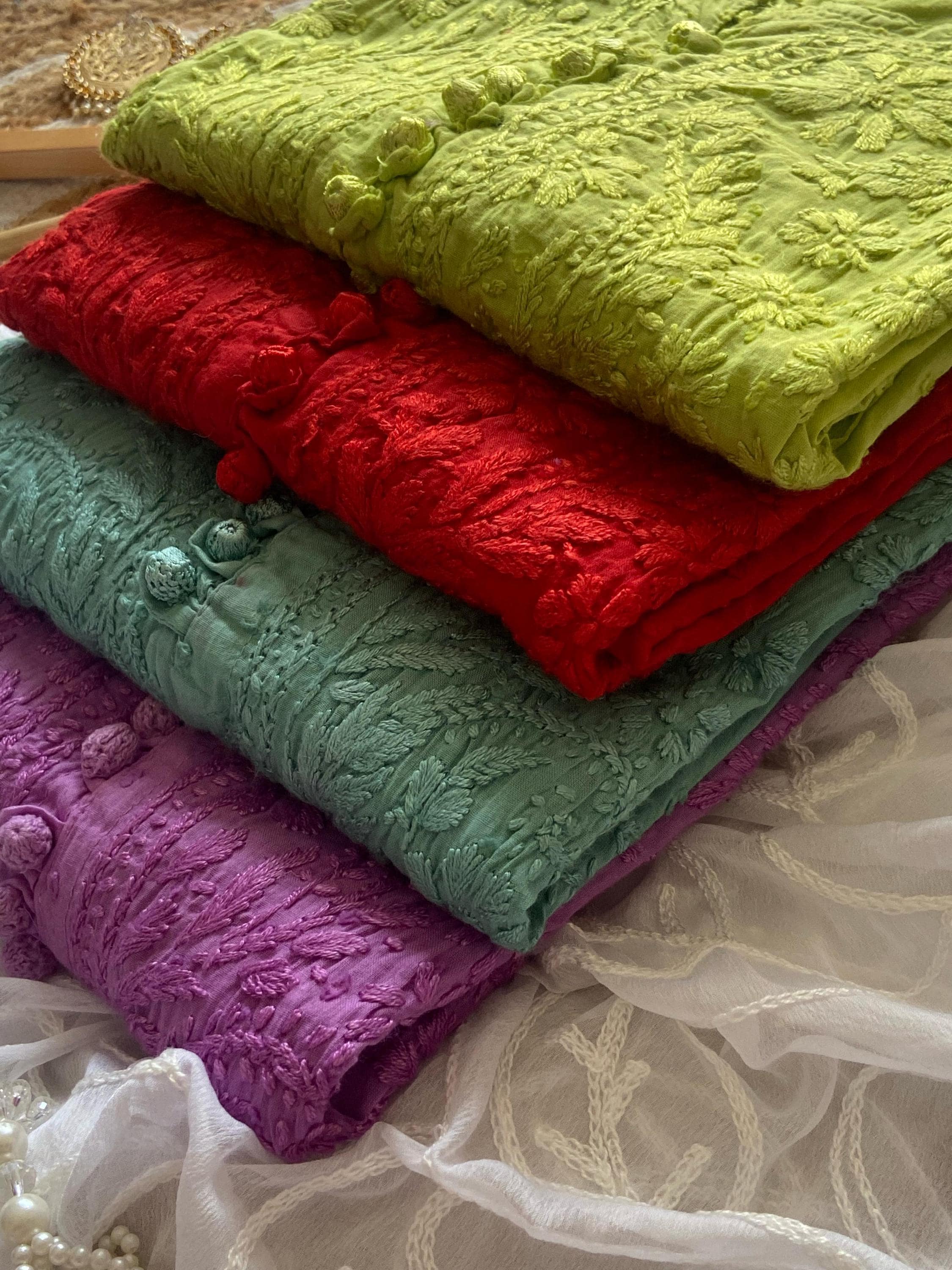 Our products are handcrafted with delicate Chikankari embroidery. To keep them beautiful for years: